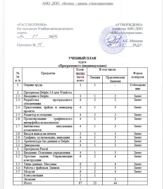 По окончании курсов учащийся должен знать возможности языков программирования Pascal и Delphi 3.0, получить навыки для работы в среде Windows, научиться составлять программы, использовать библиотеку визуальных компонентов (VCL). Курс программирования поможет разобраться в том, что такое языки программирования, как создаются компьютерные программы, и какие инструменты для этого используются.