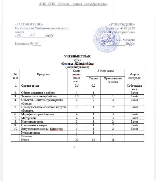 Цель курса является приобретение обучающимися теоретических и практических знаний, а также навыков работы в программе 3d Max.