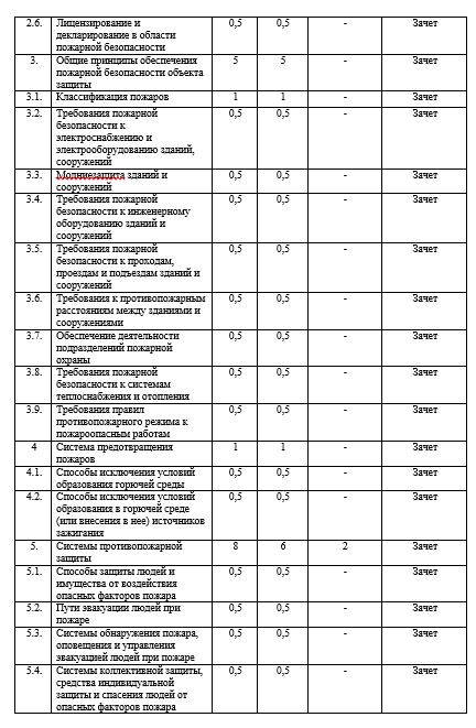 По окончании обучения учащийся должен иметь представление об организационных основах обеспечения пожарной безопасности, об оценке соответствия объекта защиты требованиям пожарной безопасности, об общих принципах обеспечения пожарной безопасности объекта защиты, о системе предотвращения пожаров, о системе противопожарной защиты.
